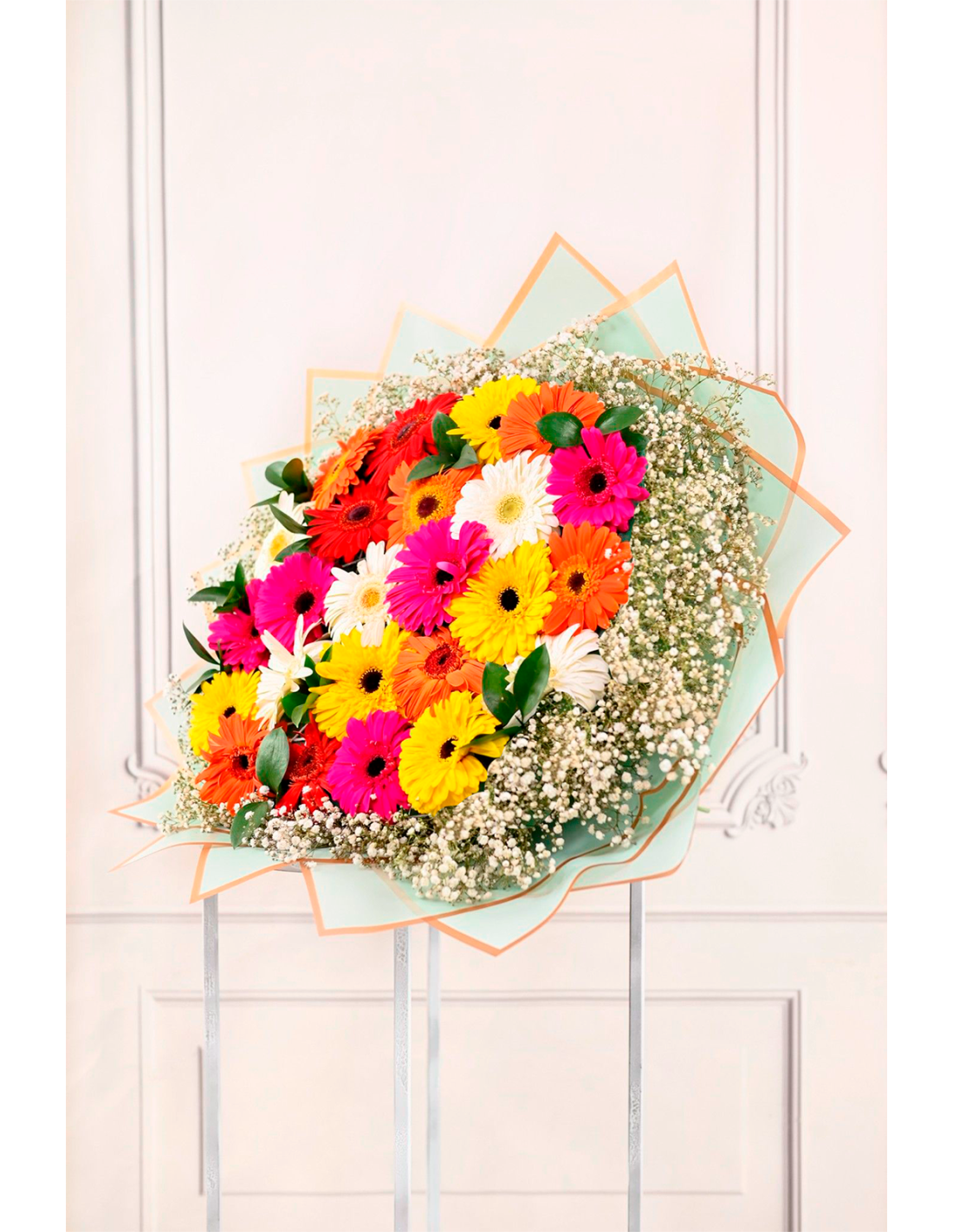 24 Gerberas Primaverales ( el tono puede cambiar según la disponibilidad )